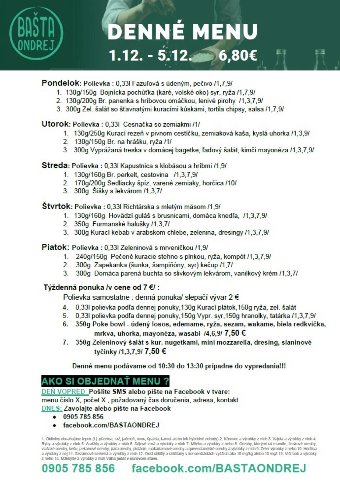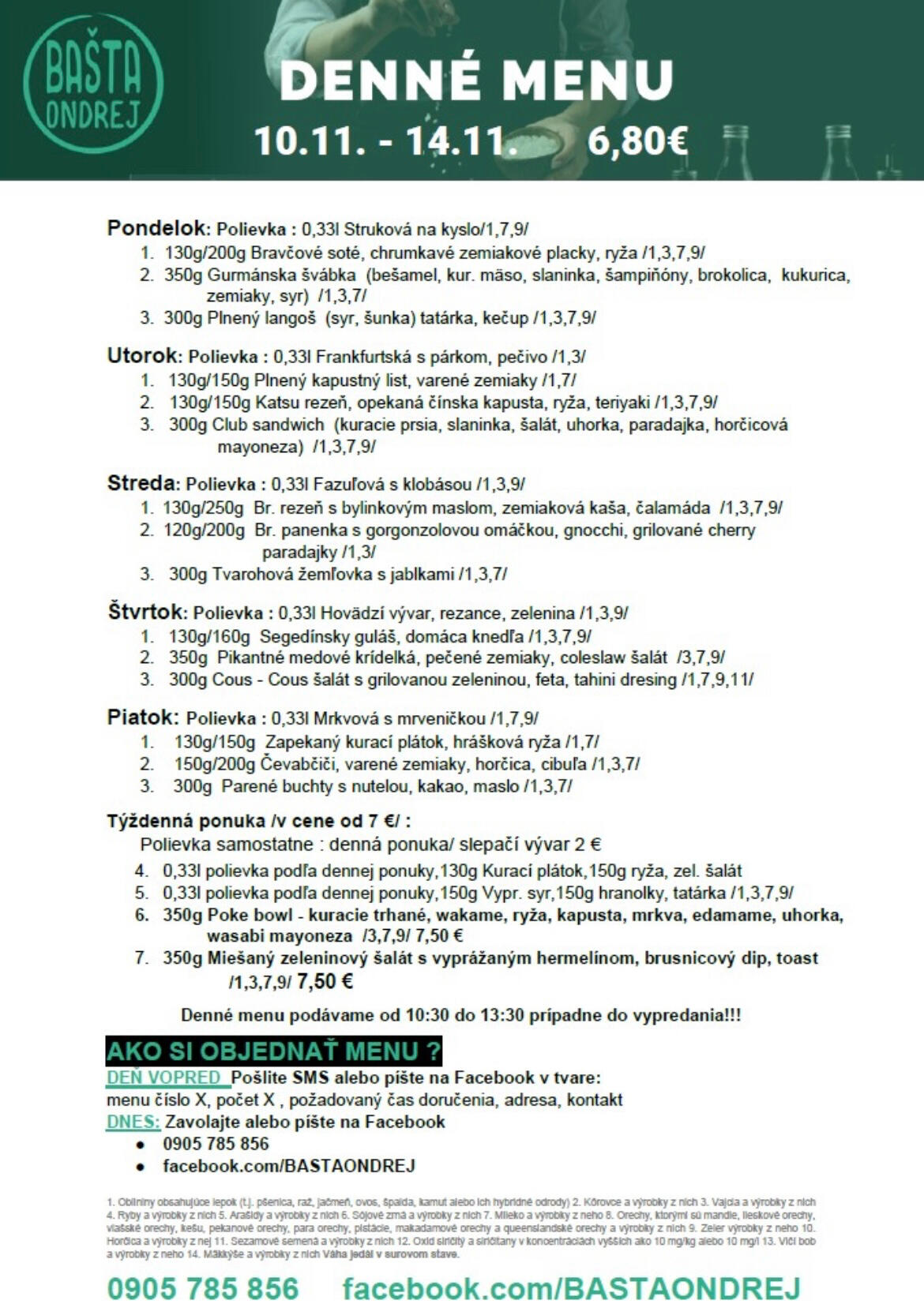 DEŇ VOPRED pošlite SMS alebo napíšte na Facebook v tvare: menu číslo X, počet X, požadovaný čas doručenia, adresa, kontakt